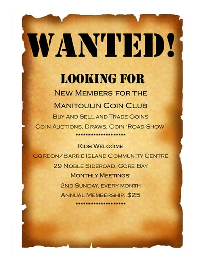 On the second Sunday of each month, the members of the island's coin club meet to talk, trade and learn about the latest coin trends and fads. Keen for new members, anyone with an interest in coins can join the club. These coin enthusiasts meet at 1pm every second Sunday of the month at the Gordon Community Hall at 29 Noble Sideroad, Gore Bay. The meeting goes until 3pm.
