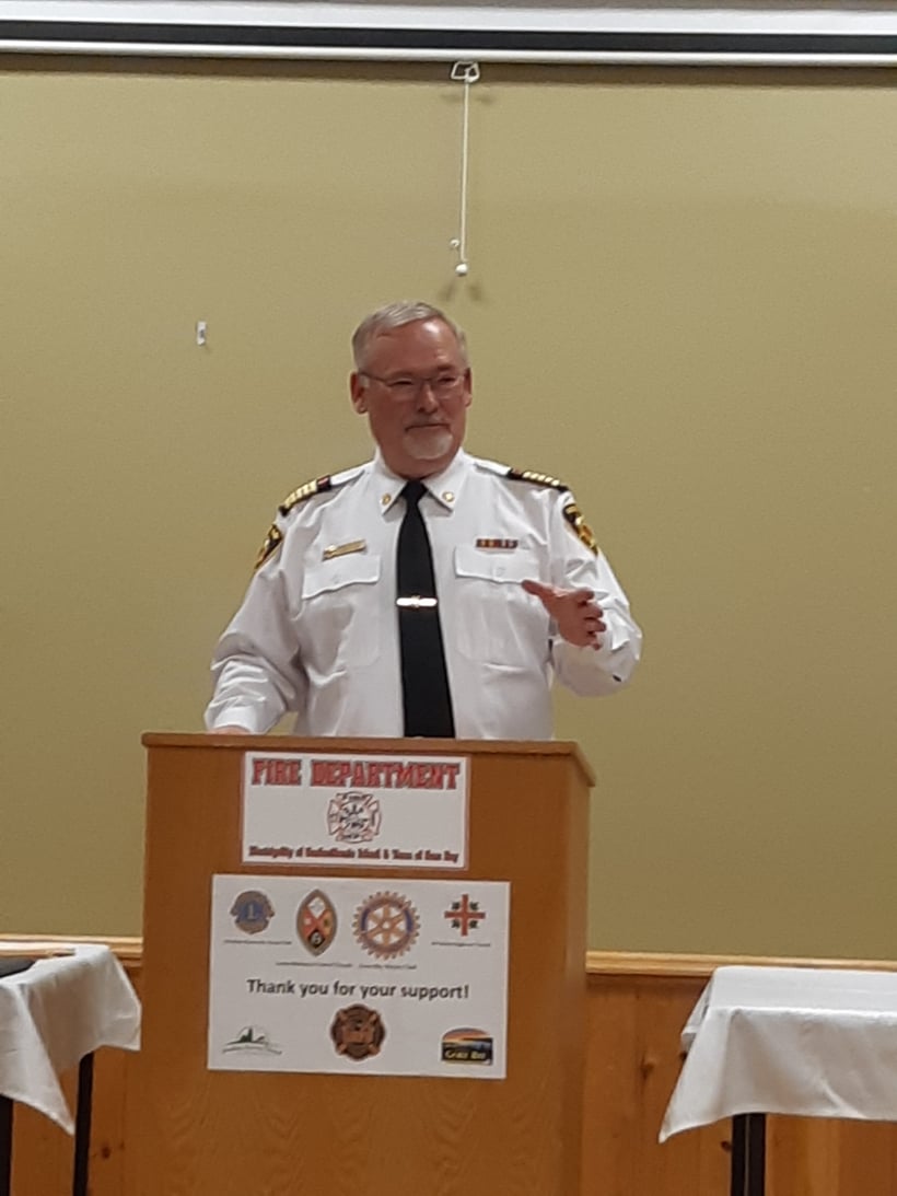 Our Fire Chief Mike Addison speaking at the Firemen's Reception in the Gordon Community Hall in April, 2024.